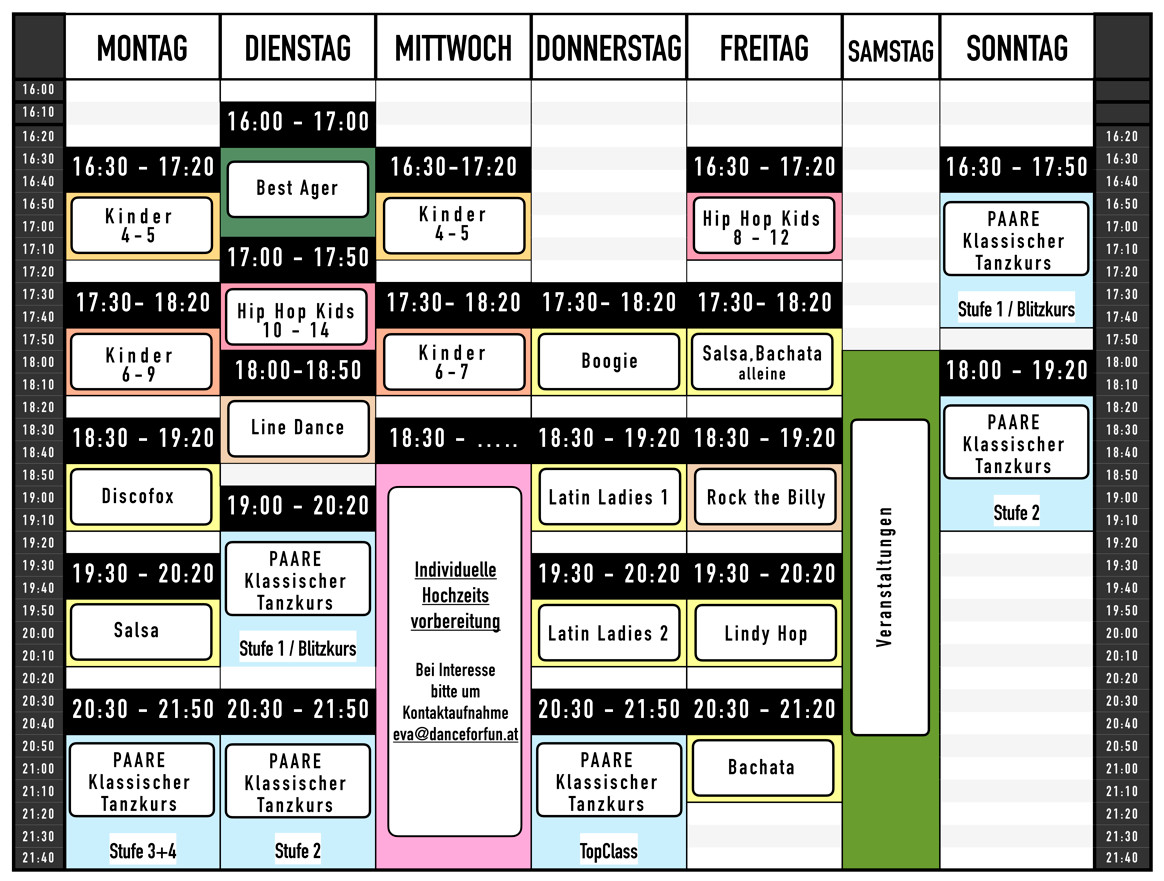 Gute Nachricht für alle jene die aus anderen Bezirken, oder aus NÖ zu uns kommen wollen: Ab 18:00 Uhr braucht ihr vor der Tanzschule weder ein Parkpickerl noch einen Kurzparkschein!